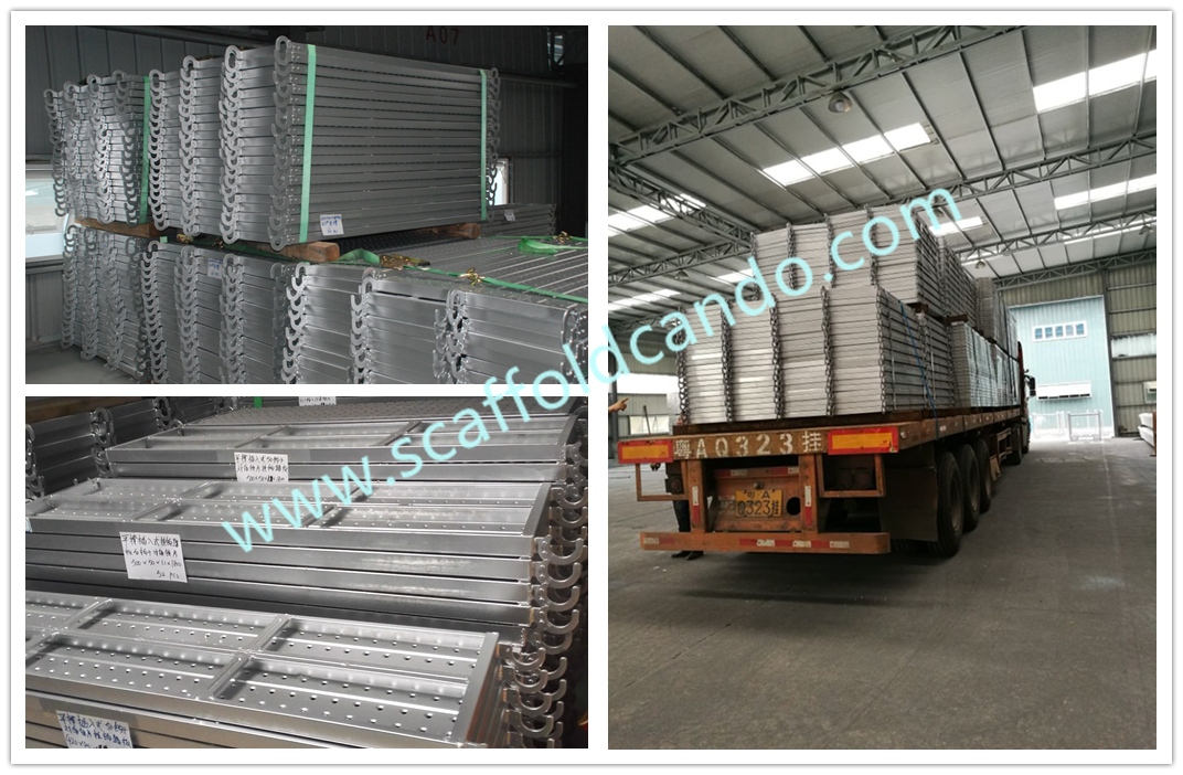 1829mmL 43.5mm hooks for Frame scaffolding system catwalk, scaffolding steel plank with hooks in Frame scaffolding can be packed in loose packing or bundles packing, loose packing can save much container space, bundles packing can make load & unloading earlier, all choices all up to you!